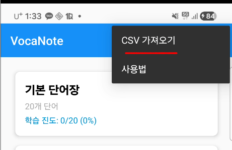 그런데 매번 일일이 단어를 넣기 번거롭죠 그래서 csv 파일로 임포트를 할 수 있습니다.
